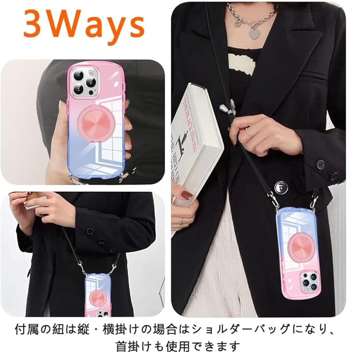 iPhone 17 Pro Max ケース クリア グラデーション色 リング付き MagSafe対応 リング アイフォン 17 promax 用 カバー 縄掛け 肩掛け 斜めかけ 透明 TPU 耐衝撃 360 スタンド機能 対応 ケース 韓国 可愛い