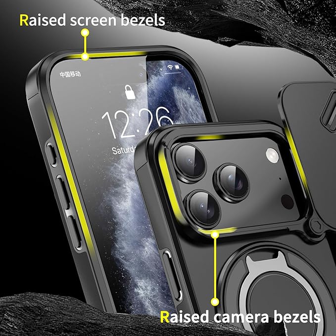 Cakublse いphone17ProMax 用 ケース Magsafe対応 PC + TPU 二重保護 カメラの保護 落下防止 米軍MIL規格 耐衝撃 アイフォン17ProMax対応 カバー リング付き スタンド付き ブラック 黑