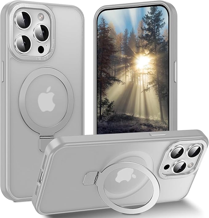 iPhone 14 Pro Max 用 ケース magsafe対応 iPhone14promax ケースワイヤレス充電 耐衝撃 米軍MIL規格 耐久性 マット感 半透明 滑り止め 指紋防止 カメラレンズ保護 スタンド機能【縦横両対応・角度調整】アイフォン14プロマックス用ケース 6.7インチ (グレー)