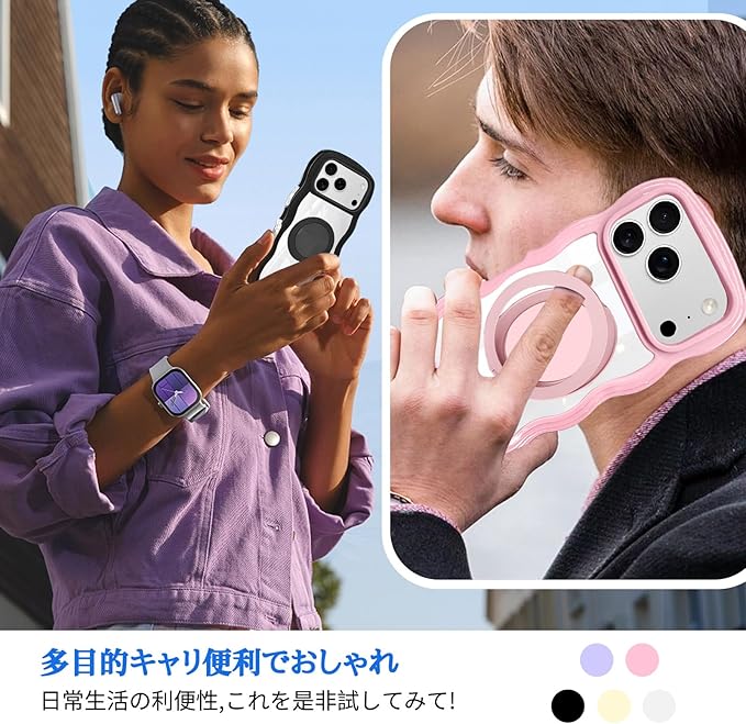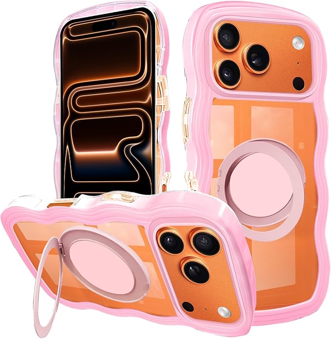 iPhone 17 Pro Max 用 ケース リング クリア アイフォン17 pro max 用 カバー スマホケース 透明 背面ケース 可愛い 波型 耐衝撃 ストラップホール付き 粉 iPhone 対応 カバー 6.9インチ 韓国 人気 ピンク