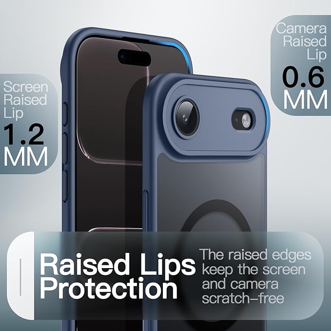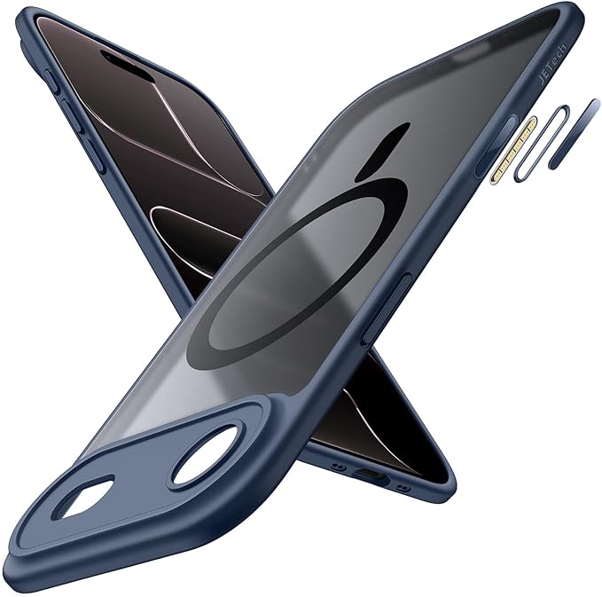 JETech iPhone Air用 マグネットケース MagSafeに対応 耐衝撃薄型 スマホカバー 内蔵カメラコントロールボタン マット半透明バック 6.5インチディスプレイ (ストームブルー)