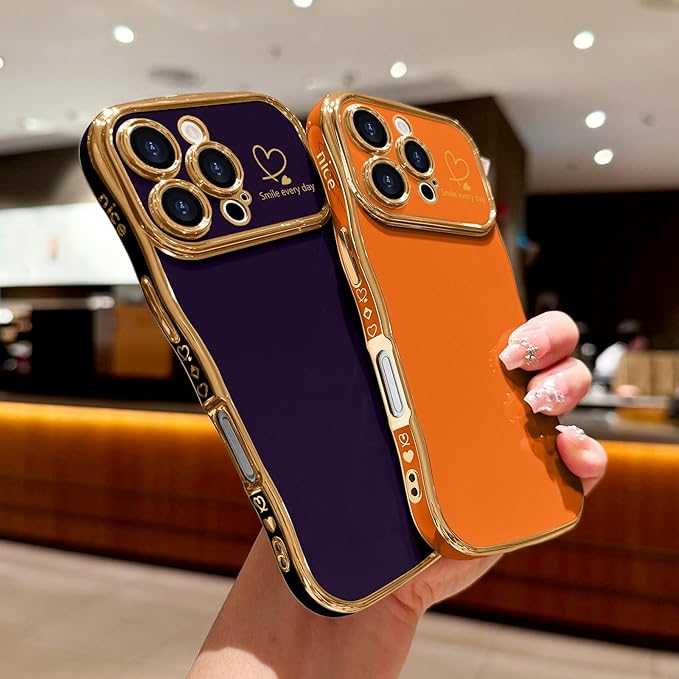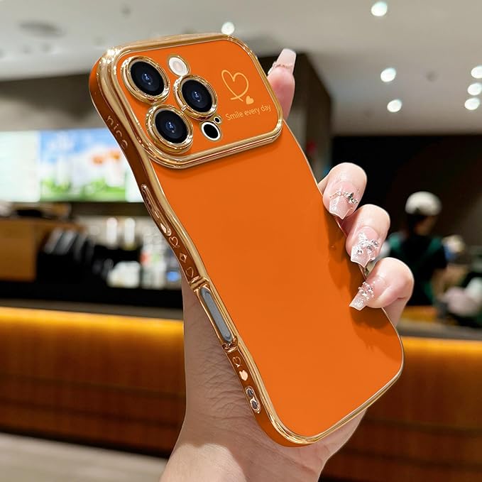 LCHULLE iPhone 16 Pro Max 用 ケース ウェーブ TPUカバー おしゃれ 滑り止め 韓国 可愛い 薄型 軽量 耐衝撃 女の子 人気 レンズを保護 ハート柄 ワイヤレス充電対応 ストラップホール付き アイフォン 16 Pro Max 用 スマホケース (オレンジ)