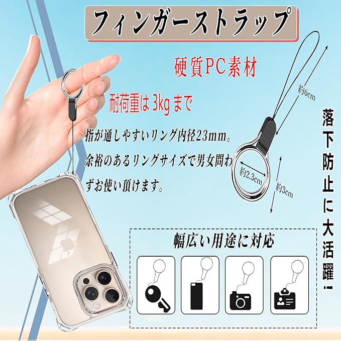 【ストラップ2枚付き & 両手を解き放つ & ワイヤレス充電対応】本iPhone 16 Pro Max 6.9''(2024)対応ケースにはフィンガーストラップとネックストラップが付属します(フィンガーストラップ長さ:10cm、ネックストラップ装着時の最大調整長:86cm。)電話ケースの特別な四隅のデザインにより、電話を縦または横に肩に掛けることができ、ストラップはいつでも調整および取り外しできます。このアクセサリーはファッションだけでなく、通常のストラップよりも快適で実用的です。 作業、旅行、出張、ショピング、散歩、コンサート、パーティーに最適です。(あなたは受け取るでしょう:1x iPhone16 Pro Max 対応 ケース + 1x フィンガーストラップ+ 1x ネックストラップ)