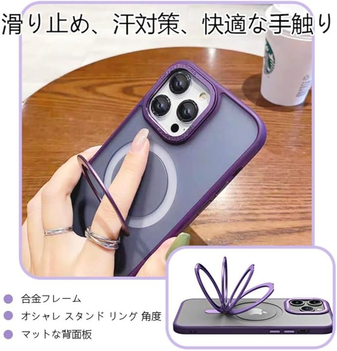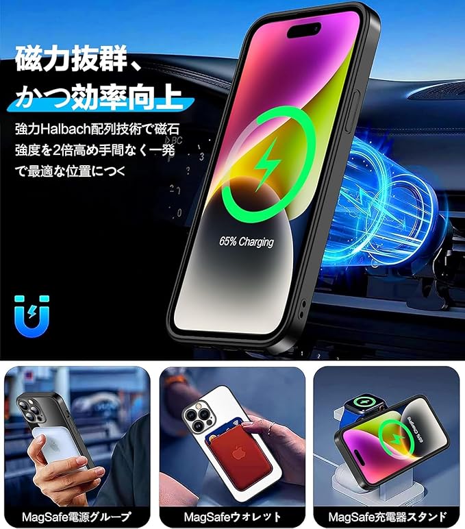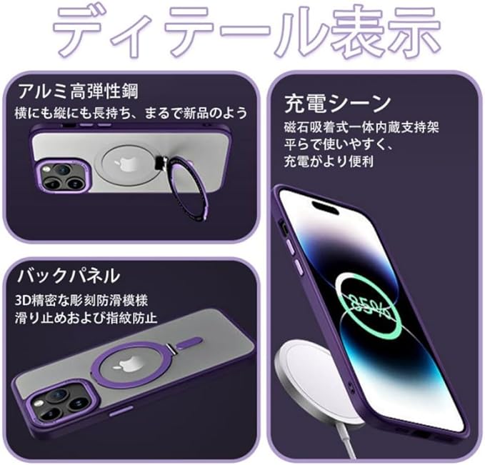 ★【MagSafe対応&マグネット搭載】超世代的な隠しスタンドと強力なマグネットリングの強力な結合により、高い吸着力でガッチリと固定しながら充電ができます。また、磁気を利用しているため充電器以外にもスタンドやウォレットなどのアクセサリーに固定可能。