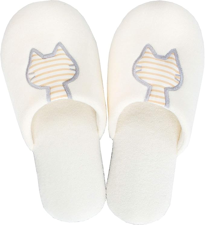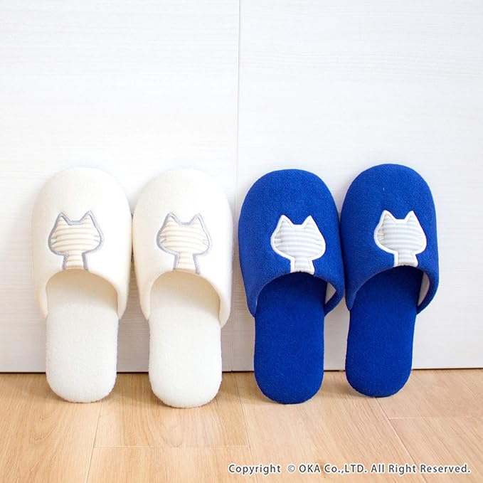 オカ(OKA) うちねこ スリッパ (足のサイズ 約 23 cm~ 24 cmまで) ホワイト (洗える おしゃれ 室内 来客用 トイレ メンズ レディース 猫 かわいい)