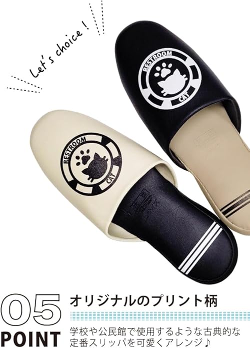 [FASPROJECT] トイレスリッパ ネコ柄 男女兼用 (フリーサイズ : 約~27.0cm) 抗菌 ビニール TOILET サニタリー トイレタリー スリッパ 大きいサイズ 01101 01102 01248 | A GEN STORE