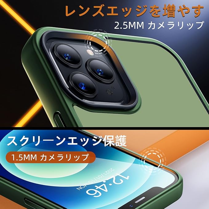 【レンズ保護・損失を軽減】 カメラより2.5mm厚、画面より1.5mm厚で、日常生活において様々な損傷に避ける。スクリーンやレンズの破損リスクを低減、高額の修理費用を節約。このケースとのフィット感を高めるために、購入する前に対応機種をご確認ください。ケース自体に厚みがあり、MagSafeアクセサリーによって充電や吸着することが可能ですが、磁力が弱くなる、ご了承ください。