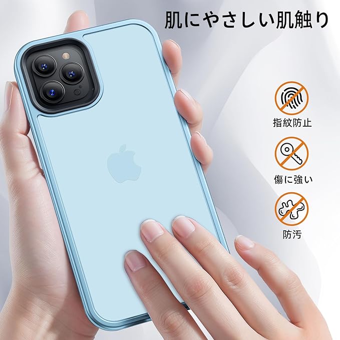 iPhone 14 Pro max 用 ケース 耐衝撃 滑り止め 指紋防止 米軍MIL規格 マット仕上げ ストラップホール付き SGS認証 黄変防止 耐久性 カバー ワイヤレス充電対応 アイフォン 14 Pro max 用 6.7 インチ ケース ライトブルー