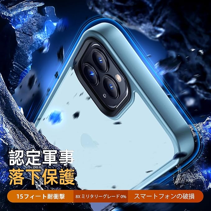 【米軍基準・安心の衝撃対策】米軍MIL規格「MIL-STD-810G」をパスする強靭な保護iPhone 14 Pro maxケース。それ以上、ポケットから取り出す時にうっかり落ちたり、歩きスマホ中にうっかり人とぶつかって落としたなど、よくあるスマホを落とす状況の試験も行った。無傷で済む!