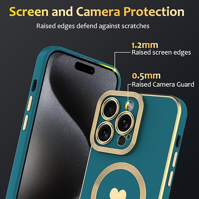 wahhle iPhone 11 Pro Maxに適したマグネットケース、豪華メッキがかわいいハート型ケースはMagsafeと互換性があり、カメラプロテクター付きの女性向け(iPhone 11 Pro Max,Green)