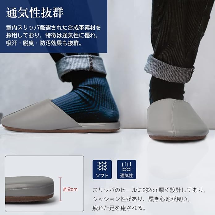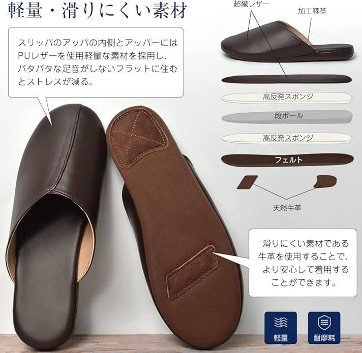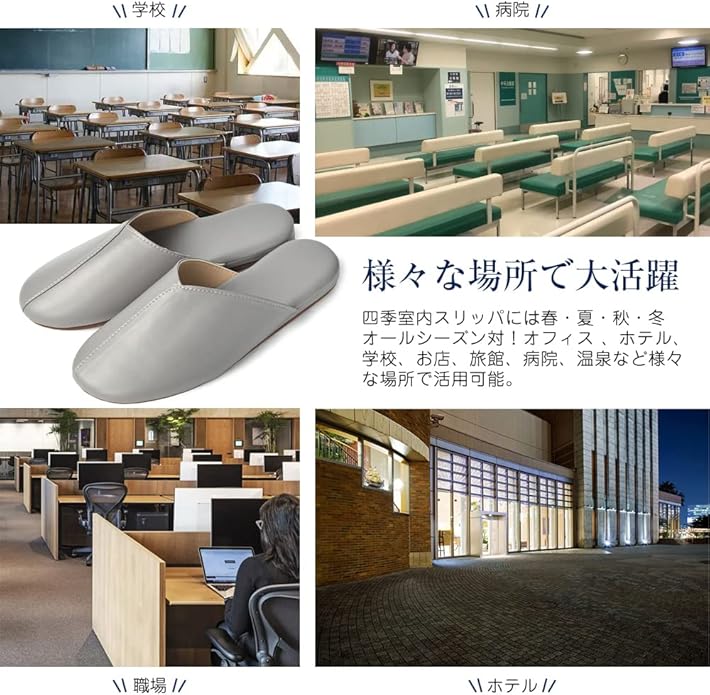 [YAKIDA] オフィス レザースリッパ ルームシューズ 高級 室内履き 汚れにくい 水拭き 静音 滑り止め 業務用 来客用 携帯用 オールシーズン