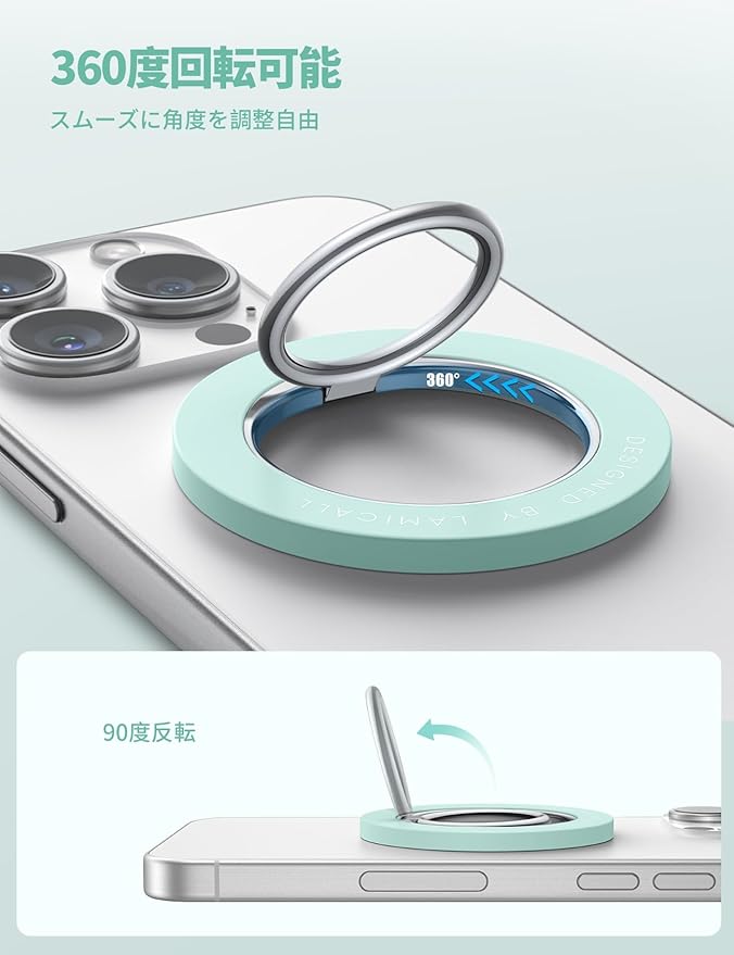 Lamicall MagSafe対応 360度回転式 スマホリング : マグネット式 携帯電話 ホルダー リング マグセーフ バンカーリング 角度調整 スタンド 磁気増強 メタルリング付き 取り外し Magnetic Phone Grip iPhone 17 17 Pro 17 Pro max Air 16e 16 Plus 16 15 14 13 Android に対応 グリーン