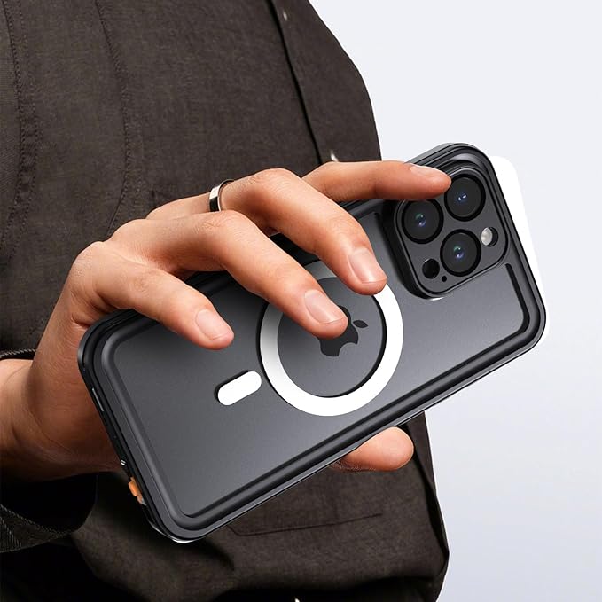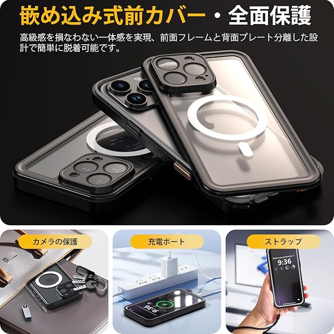 【防水・米軍基準・MagSafe対応】UMITTOS iPhone 16 Pro Max 用 ケース 防水 衝撃吸収 水中撮影対応 Qi充電対応 顔認証対応 全面保護 完全防水 防雪 防塵 滑り止め 手持ちやすい 頑丈 耐衝撃 ストラップ付き 雨の日、お風呂など適用 防水ケース(6.9インチ)