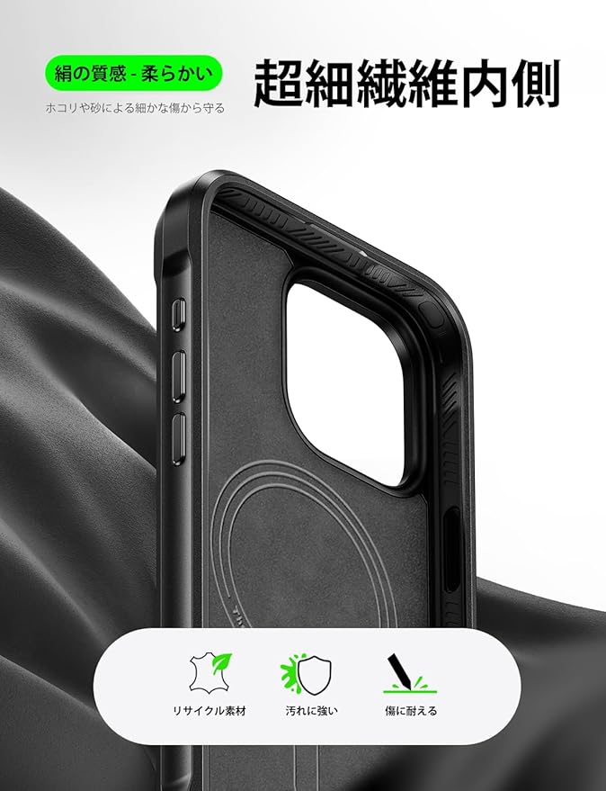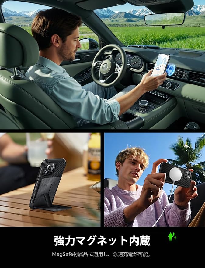 【装着簡単・磁気適合】柔軟な素材のおかげで、取り付けは押し込むだけでよろしいです。とても簡単です。高性能のマグネットを内蔵しており、MagSafeおよびマグネット付属品(粘着カードホルダー、スマホリング)にも完全に対応できます。ケースを付けたままでもワイヤレス充電が可能です。