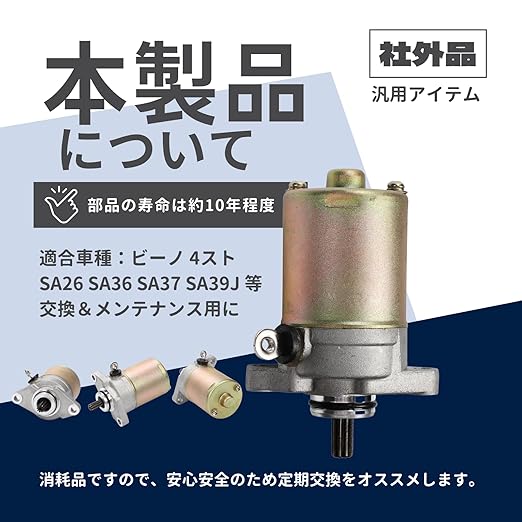 【高性能セルモーター】ヤマハ 4ST 用 ジョグ JOG/ビーノ vino SA36J/39J/26J/37J 用のセルモーターは、エンジン始動をスムーズに行うための高性能設計。寒冷地や長期間の使用でも安定した始動力を提供し、バイクのパフォーマンスを最大限に引き出します。