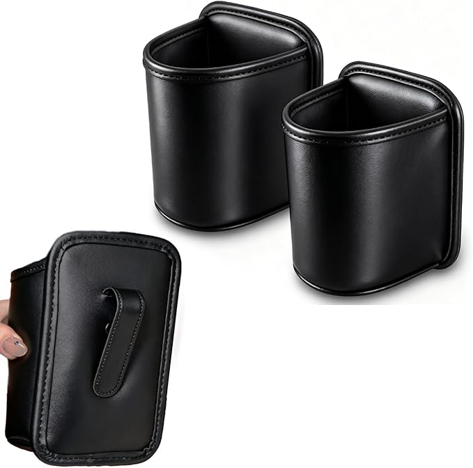 ドリンクホルダー 車 カップボックス 小物収納 PUレザー製 シートポケット 車用 多機能収納ボックス 小型ゴミ箱 収納 増設 ドア 後部座席 ウォーターカップボックス 携帯電話/カード/サングラス対応 工具不要取付 コンビニコーヒー/水筒対応 汎用 車内収納 黒 2個入り