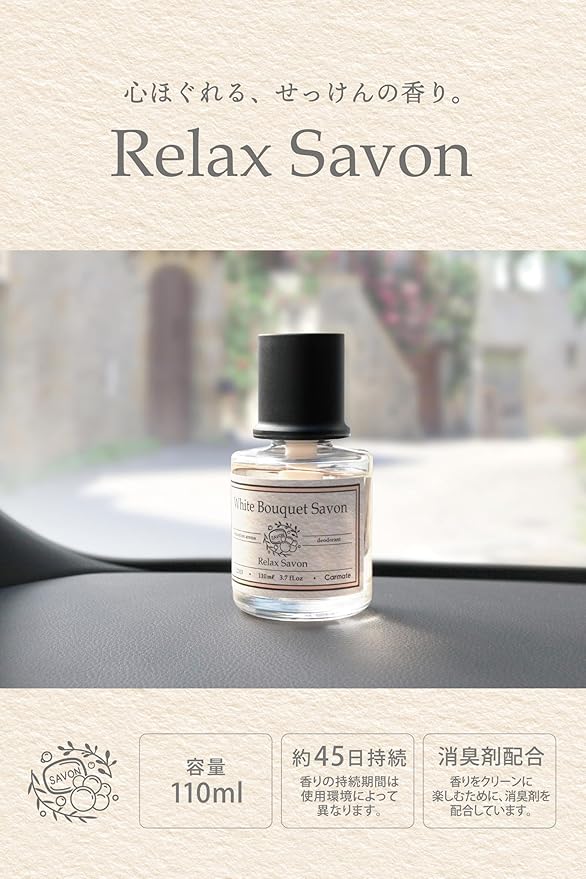 カーメイト(Carmate) 車用 消臭 芳香剤 ドリンクホルダー ダッシュボード 設置 置き型 【 ホワイトブーケ サボン 】 リラックスサボン リキッド 液体 110ml 【心地よいフローラルの香り】約45日間 長持ち L2103