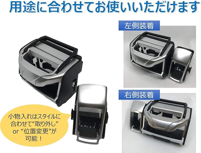 簡単取り付け:付属の部品を取り付け、エアコン吹き出し口に装着するだけの簡単設置です。小物入れはスタイルに応じて取り外しも可能です。