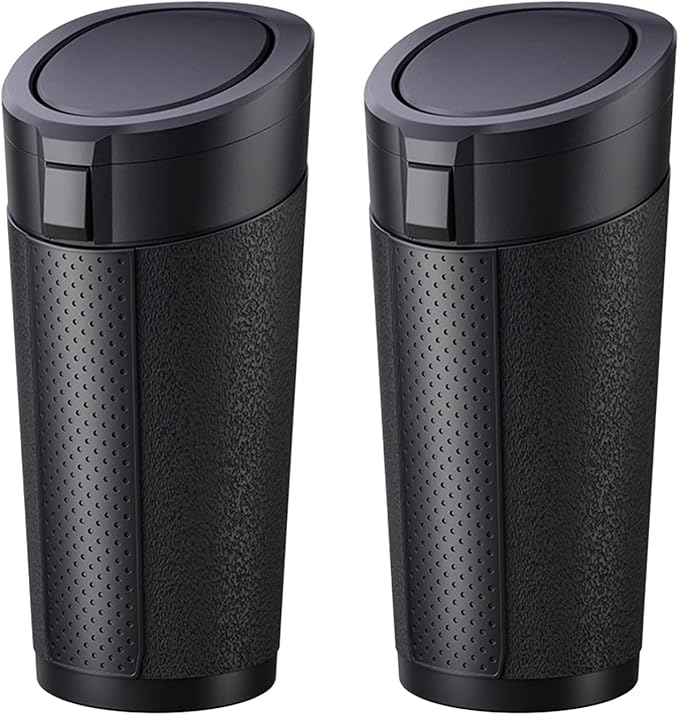 車用ゴミ箱 2個セット 蓋付き 小型ゴミ箱 漏れ防止 コンパクト設計 簡単開閉 ドリンクホルダー対応 車内収納 車内用品(ブラック)