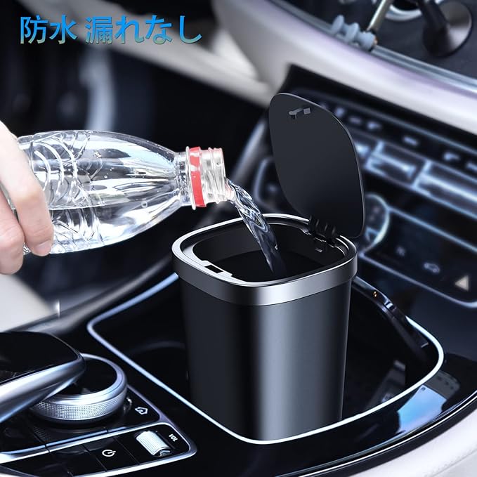 車 ゴミ箱 ボトル型ゴ ミ箱 蓋付き プッシュロック タッチ開閉 車用ゴミ箱 倒れない 大容量 コンパクト 防水 【ゴミ袋45枚付属】 ドリンクホルダー/ドアポケット/コンソールボックス/後部座席など車内のさまざまな場所に対応