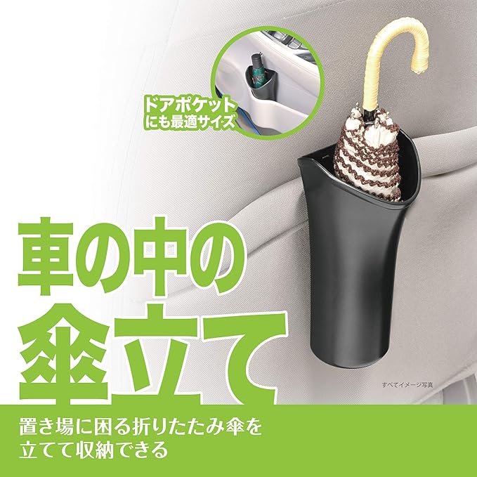 本製品は車の中で置き場に困る折りたたみ傘を立てて収納できる「車の中の傘立て」です。