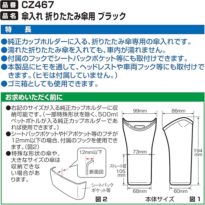 カーメイト(CARMATE) 車用 傘入れ 折りたたみ傘 カップホルダー ドアポケット サイズ CZ467