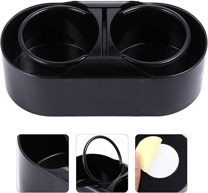 LEDMOMO 車 ドリンクホルダー 2個置き ダブル カップホルダー 増設 置き型 粘着式 車載 ツインホルダー 後部座席 ダッシュボード コンソール 汎用 缶 ペットボトル 収納 (ブラック)