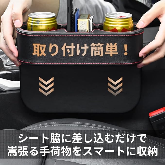 車用 サイド収納ボックス PUレザー シートポケット カップホルダー 収納ボックス 差し込み 隙間 収納 運転席 助手席 ブラック