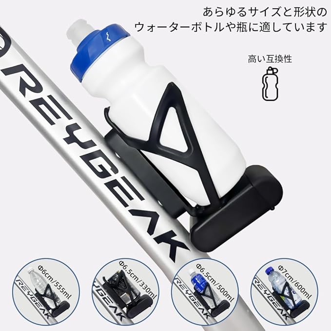 【取り付けが簡単】ダウンチューブやシートポストなどの自転車のフレームの標準ボトルケージマウントにネジを使用して簡単に取り付けられます。柔軟性の高いプラスチック素材はさまざまなボトルサイズと互換性があり、フレームを傷つけません。便利な取り付けのために六角レンチとネジが付属していま