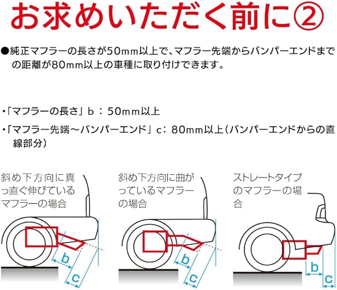 ●ストレートタイプの純正マフラーであれば、斜め下向き、斜め上向きなどに変えることができます。