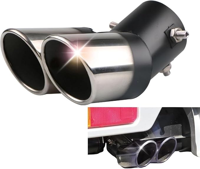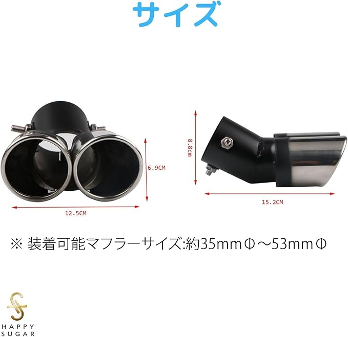 HAPPY SUGAR マフラーカッター 2本出し スラッシュカット 汎用 排気テールマフラー 斜めカット 外装 パーツ ドレスアップ カスタム (下向き)