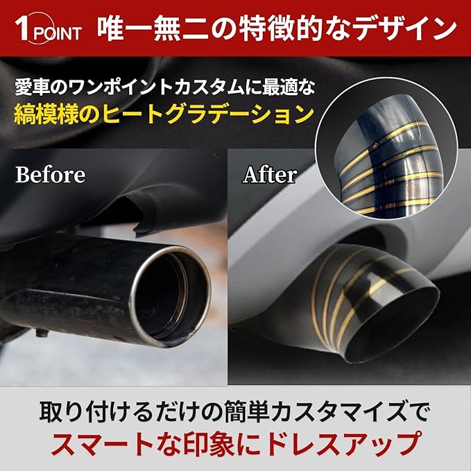 【手軽にドレスアップ!】手軽に愛車をドレスアップできる最強アクセサリーです。【こんな方におすすめ】愛車の印象を手軽に変えたい方。排気音を変化させたい方。シンプルなドレスアップを探している方。マフラーカッターをお探しの方。