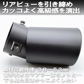 サビに強いステンレス製。マットなブラックタイプ。マフラー出口管の形状は曲管用です。