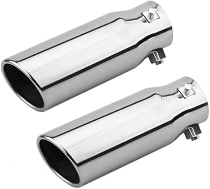 車用 マフラーカッター ストレート式 マフラーチップ 口径63mm エキゾーストチップ 斜めカット ステンレス製 排気管 マフラー パイプ テールパイプ 外装 パーツ カスタム 大型車 軽自動車 取付直径38-53mmに対応 シルバー (2個入り)