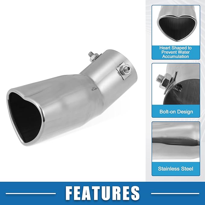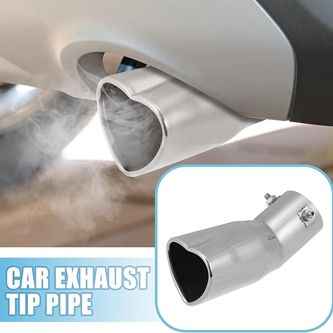 ACROPIX マフラーカッター 車の排気管 ハート型 出口排気テールパイプ パイプ用 ステンレス鋼 62 mm入口 69x60 mm 25-55 mm径 シルバートーン