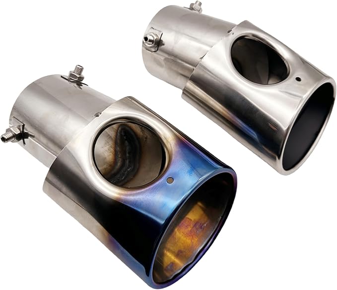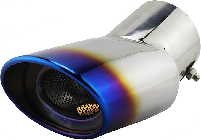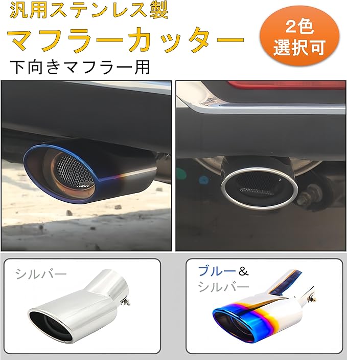 マフラーカッター 汎用 軽自動車 乗用車 車 ドレスアップ 下向きマフラー用 カスタムパーツ DIY 車外装パーツ カー用品 ステンレス製 初心者 改造 簡単取り付け (ブルー&シルバー)