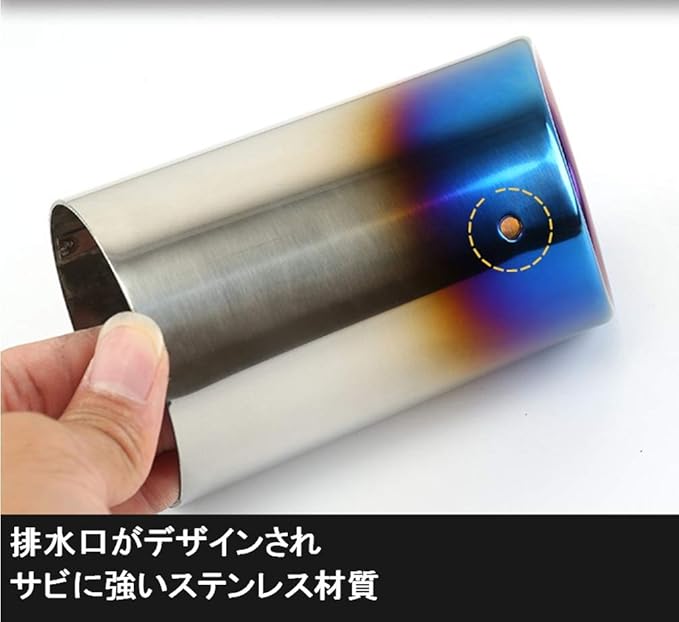 チタン焼き風ブルーのおしゃれなマフラーカッターでお手軽にワンランク上のカスタムができます。