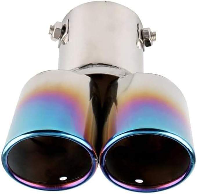 車用 マフラーカッター 下向き式 2本出し 口径2.5インチ エキゾーストチップ ステンレス製 斜めカット 排気管 マフラー パイプ テールパイプ 外装 パーツ カスタム 大型車 軽自動車 取付直径38-53mmに対応 ブルー