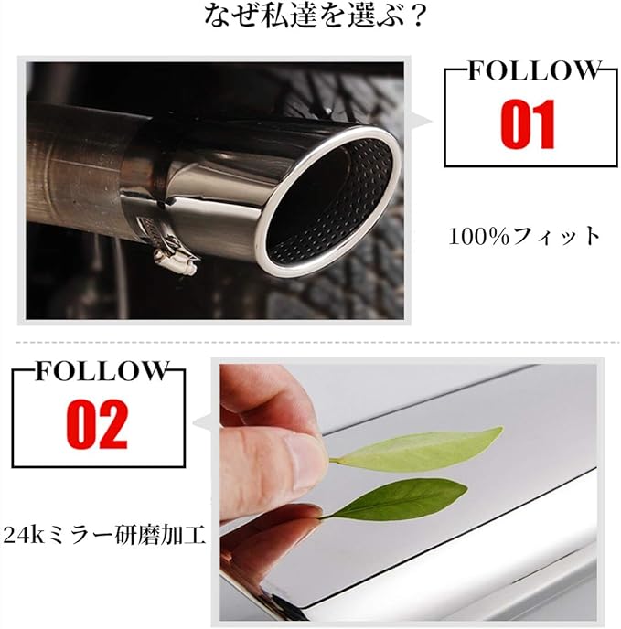 【 鏡にような表面 】ミラー研磨工程、耐腐食性優れ、高級的な外観はとっても目立つ、あなたの車をよりオシャレ、よりモダンな外観を与えられます。