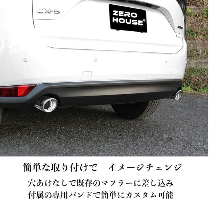 【商品内容】マフラーカッター本体及び取り付けバンド カラー:シルバーメッキ 【適合車種】●CX-5 KE系 (平成24年2月~) 全グレード対応 ● CX-5 KF系 前期(平成29年1月~) 全グレード対応 ● CX-5 KF系 後期(令和3年12月~) 対応グレード 20S Smart Edition 20S PROACTIVE 20S Black Tone Edition 20S Field Journey 25S L Package XD Smart Edition XD PROACTIVE XD Black Tone Edition XD Field Journey XD L Package ※Sports Appearance・Exclusive Modeは非対応となります 【素材】ステンレス 【注意事項】・1台分 (2個)必要の場合2点ご購入ください。・適合については、マイナーチェンジ等により形状が変更となった場合お取り付けできない場合がございます。 ・取り付け可能グレードにつきましてはご確認の上お買い求めください。確認不足による返品はお受付いたしかねます。 ・視聴環境やモニターにより見え方が異なる場合がございます。イメージが異なったといった内容での返品はお受付いたしかねます。 ・輸送の段階で生じる細につきましては保証対象外となります。 ・製品の特性上商品裏側の汚れや傷につきましては保証対象外となります。