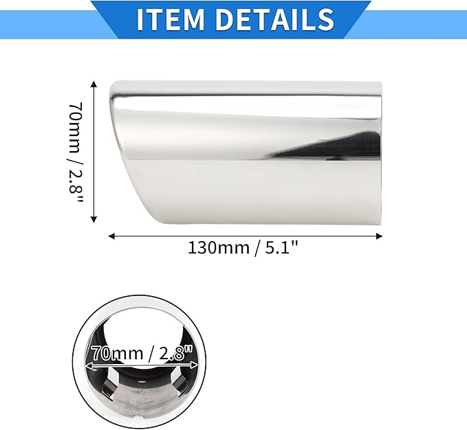 車のテールパイプの外径を測定してください。この排気口は70mmテールパイプに適合します。