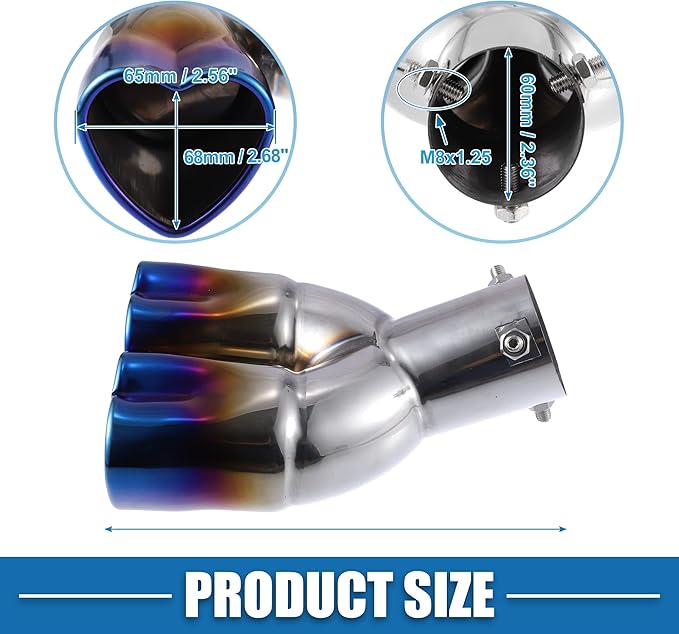 マフラーカッター マフラー エキゾーストパイプ 排気管 下向き 2本出し ダブルアウトレット 汎用 車外用品 ハート型 マフラーチップ テールパイプ ボルトオン 金属 適用径60mm チタン焼き調