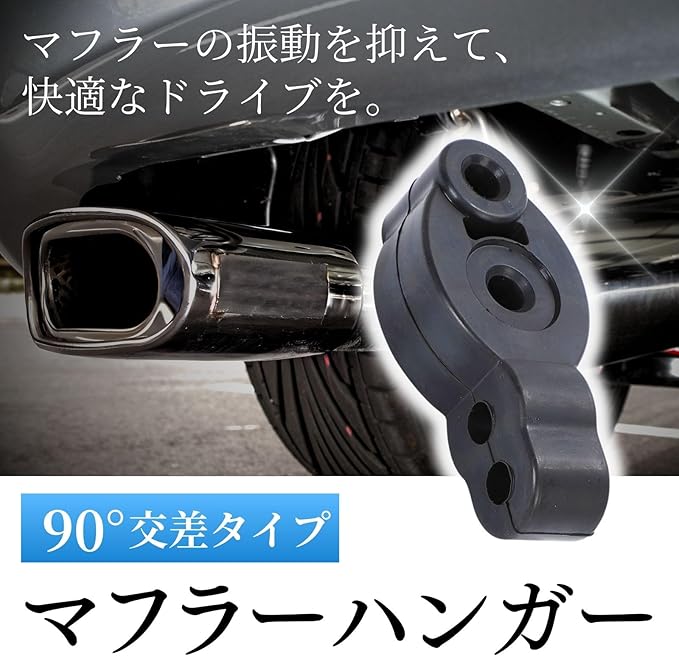 90 交差タイプのマフラーハンガー(マフラーリング)です。ゴム素材を使用しており、マフラーの振動を抑えて快適なドライブをサポートします。