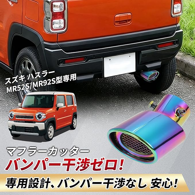 【スズキ ハスラー用 MR52S/MR92S型】Suzuki Hustler用 2020 年1月以降モデル対応 マフラーカッター 高輝度ステンレス 取り付け簡単 軽自動車専用 排気装飾カバー 外装パーツ 排 水穴付き 防錆防食 マルチカラー