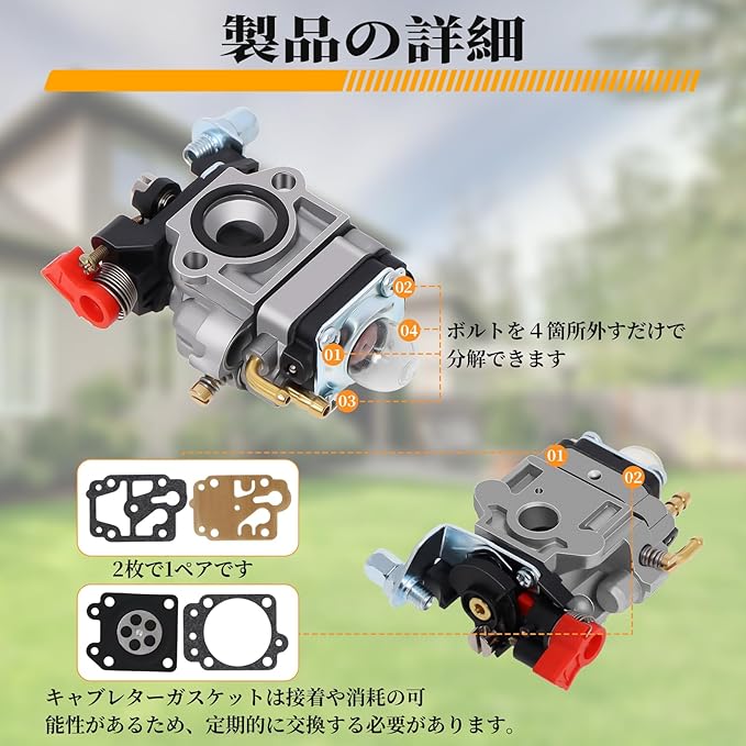 【対応機種】ワルボロ社WYJタイプのキャブレターの交換品で、26cc~33ccの刈払機に対応します。