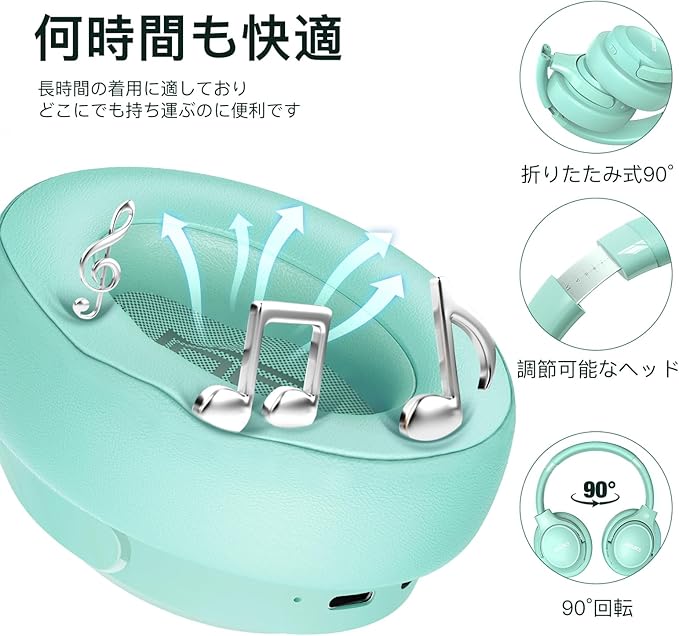 BERIBES ヘッドホン bluetooth 65 時間再生 6つのEQモード ワイヤレスヘッドフォン 重さはわずか180g 快適なフィット感 HD マイク内蔵 ヘッドホン HIFIステレオ… (绿)