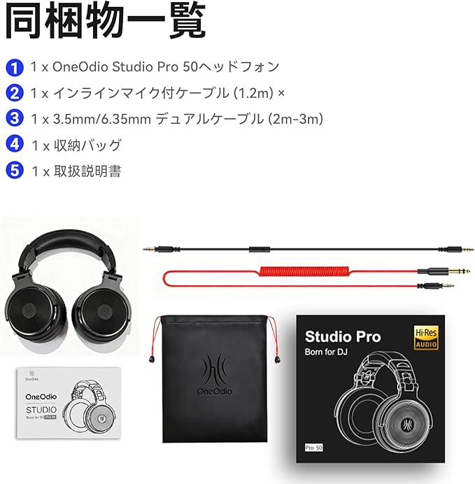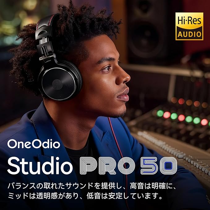 OneOdio Pro50 ハイレゾ ヘッドホン 有線 50mmドライバー プロフェッショナル モニターヘッドホン DJ用 密閉型 スタジオ用/楽器練習/ミキシング/TV視聴/映画鑑賞 (黒)