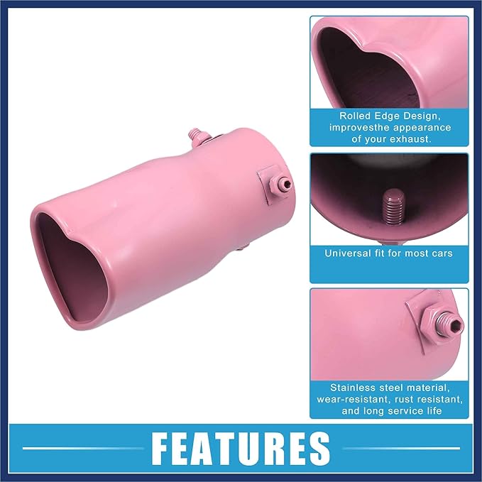 車用排 気管 ハート型 テールパイプ 2.48インチ外径 2.64x2.36インチ出口 5.43インチ長 ストレートボルトオンマフラーチップ メタルピンク自動車用
