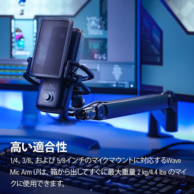 【Amazon.co.jp限定】Elgato Wave Mic Arm LP 薄型デザインマイクアーム 配信/ゲーミング/レコーディング向け クランプ式固定 モニター下部からの設置に適用