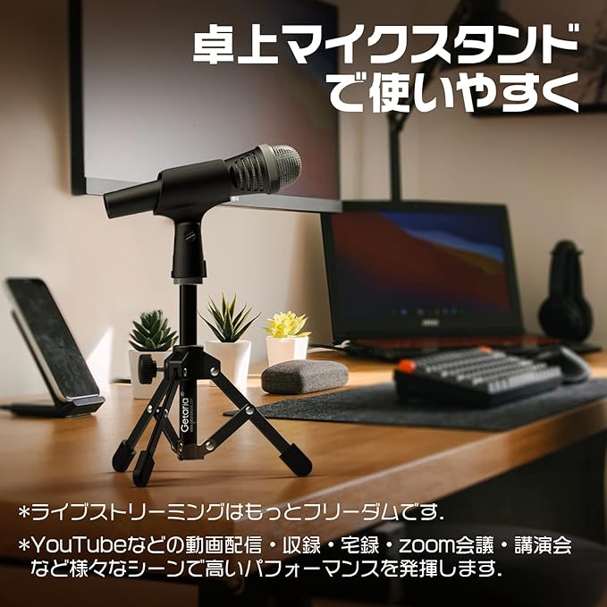 三脚&ノンスリップベース:Getariaの三脚卓上マイクスタンドは、鉄の材料で構成されており、硬くて丈夫と耐久性。三脚の設計によってそれはテーブルの上で安定できます外力の行為の下で容易に、転がらない。調節可能で折りたたみ式なので、さまざまな位置にスタンドを配置することができます。